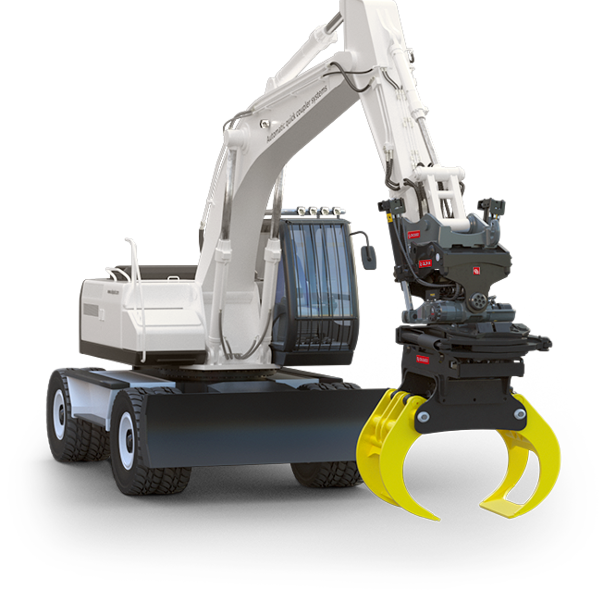 If you mount automatic OilQuick quick couplers on top of and underneath the Tiltrotator, it not only tilts to the side and rotates for greater maneuverability but also enables you to attach hydraulic tools within a few seconds.