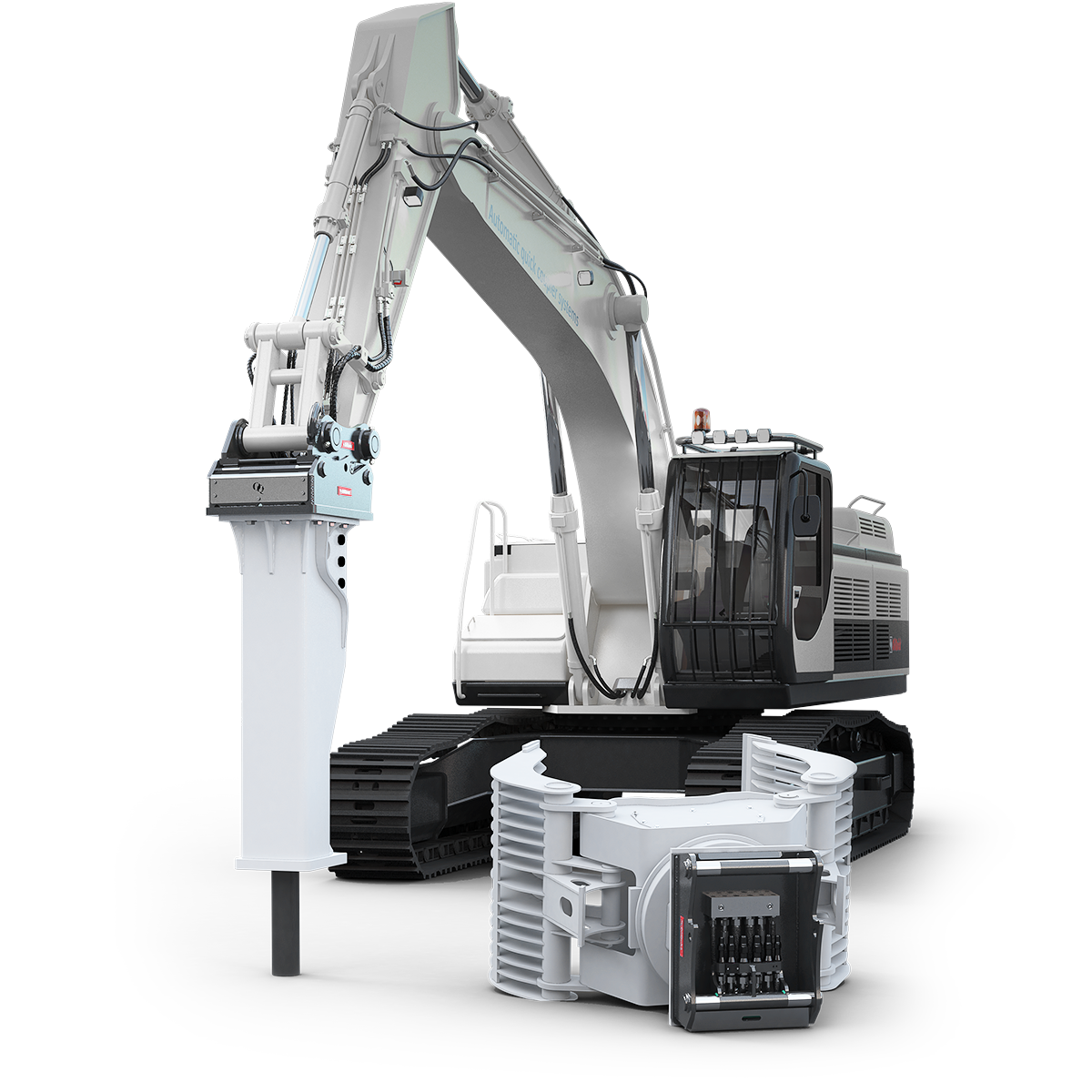 OilQuick is an automatic quick coupler system for excavators, which allows hydraulic work tools to be connected and disconnected from the drivers cab. The operator can change between various work tools within a few seconds, such as a hydraulic hammer, steel or concrete shears, sorting grapple, hydraulic magnet, compactor, sorting bucket, tilt bucket or tiltrotator.